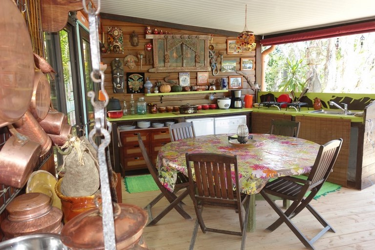 - La table d'hôtes se situe dans la cuisine extérieure dite CUISINE DU TERROIR : voir photo. Dan vous sert directement de sa cuisine à la table d'hôtes : cocotte en fonte, casseroles et ustensiles en cuivre et cuisson à l'ancienne font le charme et la qualité de la table d'hôtes